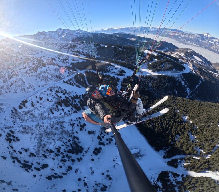 Une expérience simple, accessible et inoubliable pour découvrir le parapente en hiver dans les Alpes.
